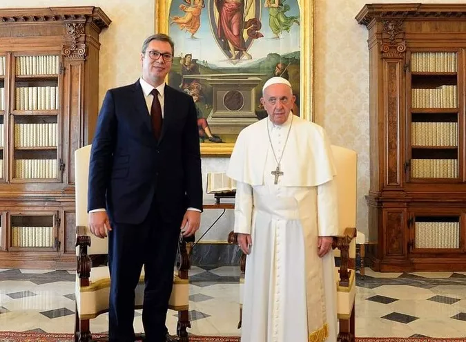 Kako je saopćilo Predsjedništvo Srbije, Vučić je sa papom razgovarao o bilateralnim odnosima, eurointegracijama Srbije, regionalnoj i međunarodnoj saradnji.