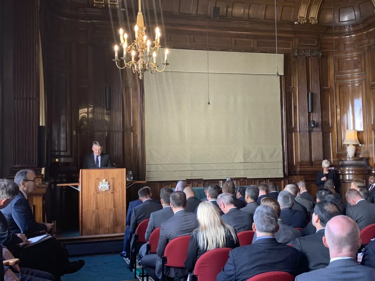 LONDON, (Patria) - U sklopu radne posjete Ujedinjenom Kraljevstvu Predsjedavajući Predsjedništva Bosne i Hercegovine Željko Komšić obratio se danas pred Kraljevskim Koledžom sigurnosnih studija (Royal College of Defense Studies)