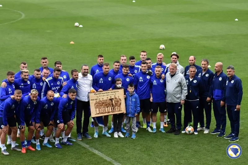 Tom prilikom Ismet Hodžić, dječak koji je boravio na liječenju u Italiji je našim reprezentativcima uručio drvorez u znak zahvalnosti što naši Zmajevi ukazuju na probleme sa kojim se susreću oni koje je zadesila ova bolest.