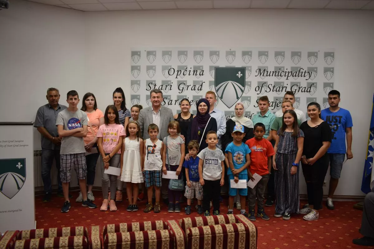 SARAJEVO, (Patria) - Učenici iz porodica romske nacionalnosti iz Starog Grada, kao i učenici iz višečlanih porodica dobili su danas školarine Općine Stari Grad koje im je uručio općinski načelnik