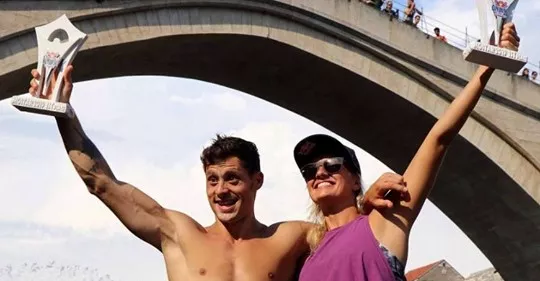 MOSTAR, (Patria) - Pobjednici Red Bull Cliff Divinga u Mostaru nakon fascinantnih skokova sa platforme sa Starog mosta u Neretvu koji su održani danas su Constantin Popovici (Rumunija) i Rhiannan Iffland (Australija).