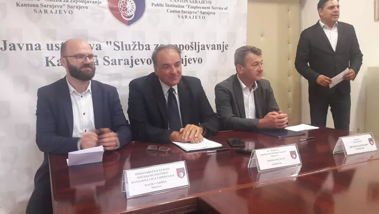 SARAJEVO, (Patria) - Direktor Javne ustanove "Služba za zapošljavanje Kantona Sarajevo" Sarajevo Nermin Pećanac i načelnik općine Stari Grad Ibrahim Hadžibajrić u prisustvu ministra za rad, socijalnu politiku, raseljena lica i izbjeglice KS Malika Garibije potpisali su memorandum o saradnji. Općina Stari Grad jedina je gradska općina koja nije imala takav sporazum sa Službom.