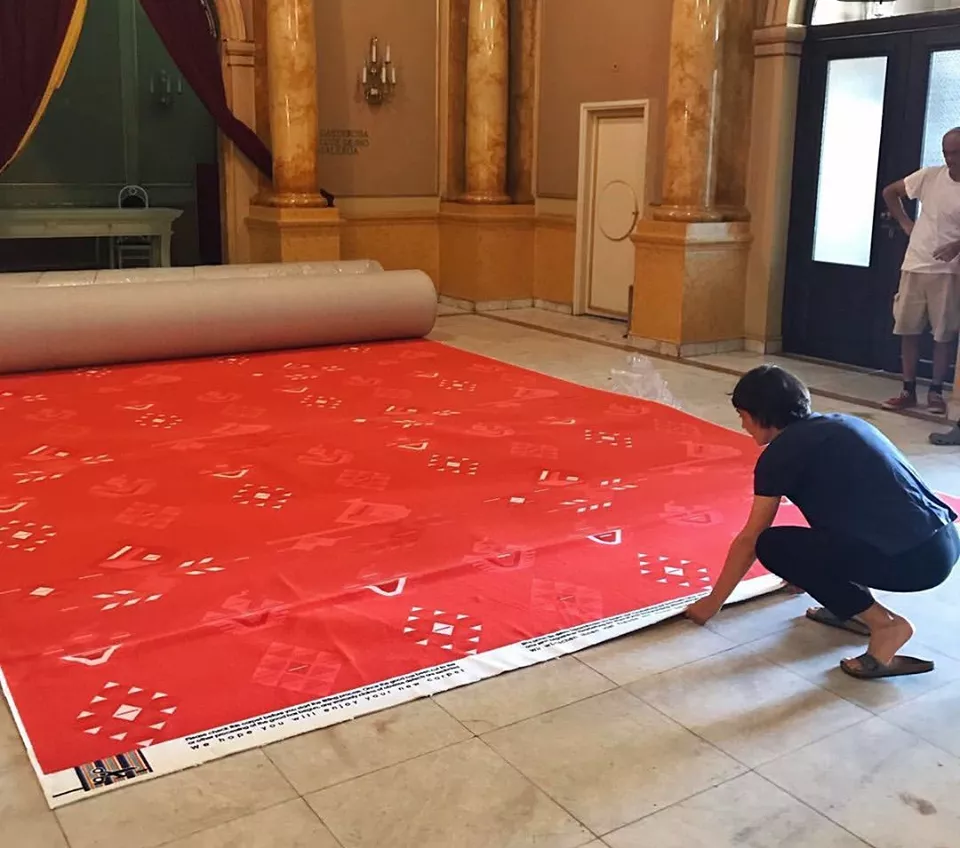 SARAJEVO, (Patria) - Crveni tepih sa motivima bosanskog ćilima kojim će prolaziti gosti ovogodišnjeg 25. Sarajevo Film Festivalu dopremljen je u Narodno pozorište. Ćilim je predstavljen 5. jula, a u toku su pripreme za jubilarno izdanje Festivala.