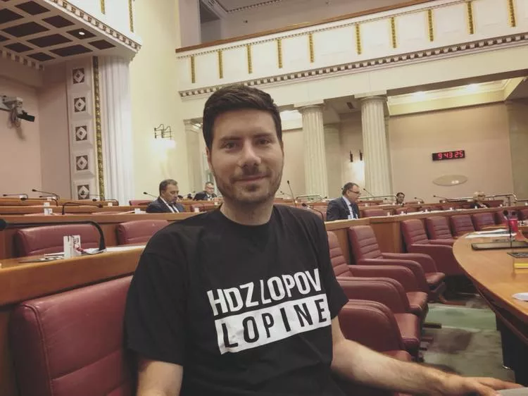 Uz poruku je objavio i fotografiju iz Sabora, u majici s porukom "HDZ lopovi lopine".