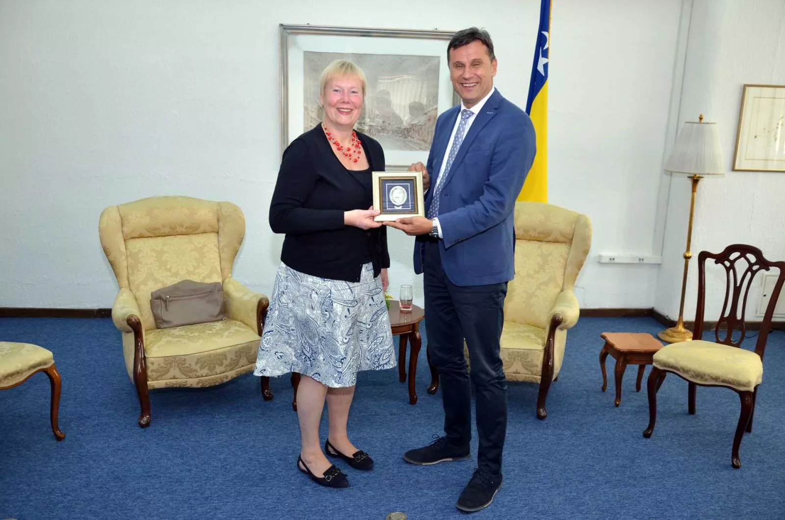 Evropskoj uniji. U znak zahvalnosti za sve što je učinila tokom svog mandata i sjećanja na period proveden u Bosni i Hercegovini premijer Novalić je ambasadorici Hohmann, uručio prigodan