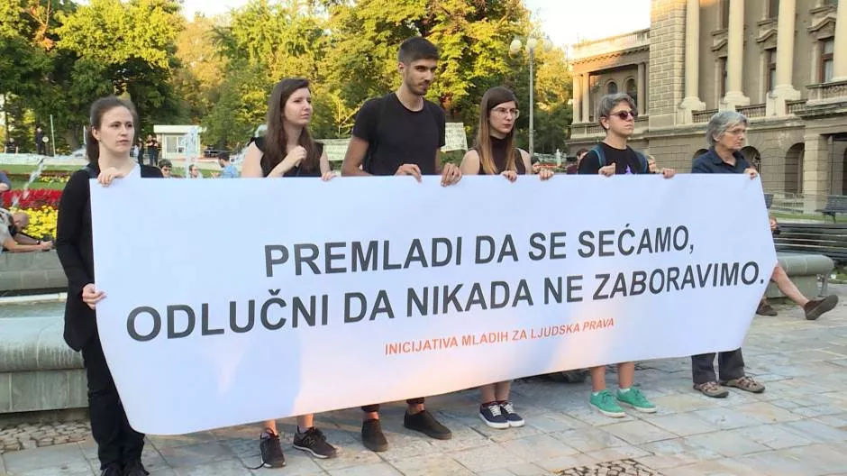 BEOGRAD, (Patria) - Inicijativa mladih za ljudska prava večeras je u parku kod Predsjedništva Srbije u Beogradu održala komemorativni skup za žrtve genocida u Srebrenici.