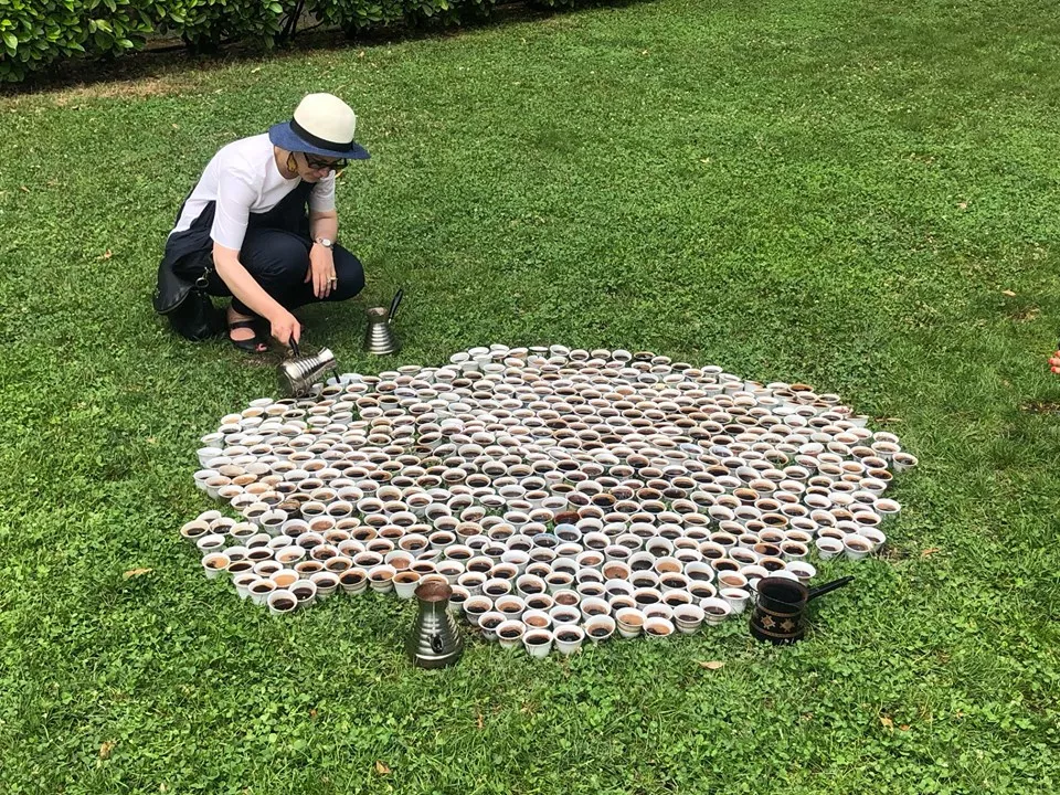Na trgu u Serra dei Giardini u Veneciji prolaznici su punili fildžane kafom i redaju ih do broja 8.372. Akcija se provodi do 20 sati.