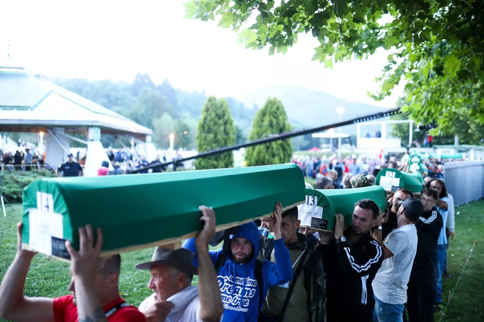 Tabuti žrtava jučer su izneseni na Musalu. Nakon komemoracije i vjerskog dijela programa žrtve će biti spuštene u kabure. Članovi porodica, preživjele žrtve genocida, brojni građani iz cijelog svijeta došli su u Potočare kako bi na 24. godišnjicu genocida u Srebrenici odali počast svim žrtvama njih 8.372. Danas je u FBiH proglašen Dan žalosti.