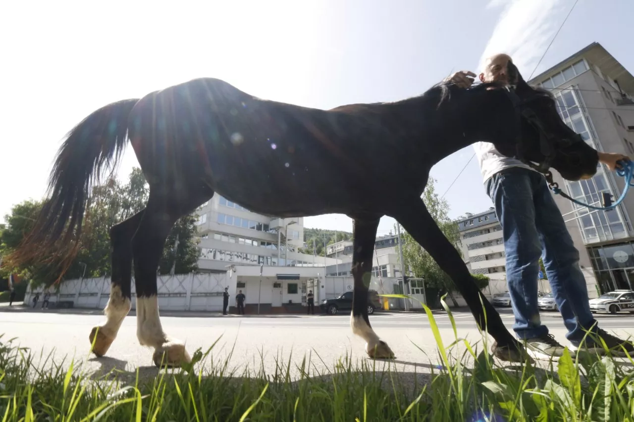 SARAJEVO, (Patria) - Članovi nevladine organizacije „ReStart“ iz Banja Luke simbolično su danas potkovali konja ispred zgrade OHR-a u Sarajevu, kao odgovor na aferu „potkivanje“ koja potresa bh. pravosuđe.