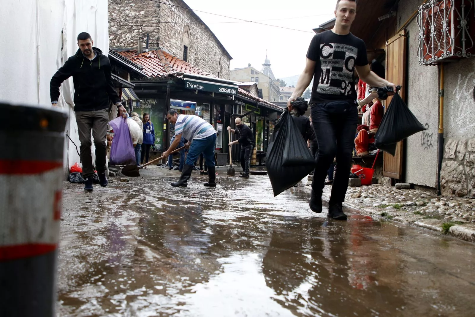 SARAJEVO, (Patria) - Nakon poplave koja je danas potopila starogradsko jezgro Baščaršiju nakon nevremena koje je trajalo više od dva sata, saniraju se štete.