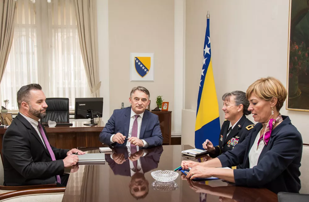 saradnja unaprijedila. Sagovornici su podijelili zabrinutost oko transnacionalnih izazova sa kojima se Bosna i Hercegovina suočava, ali i unutrašnjih problema, poput odlaska stanovništva, posebno mladih. Generalica Bissell je zahvalila na učešću Oružanih snaga BiH u misijama podrške miru, u kojima daju značajan i zapažen doprinos.