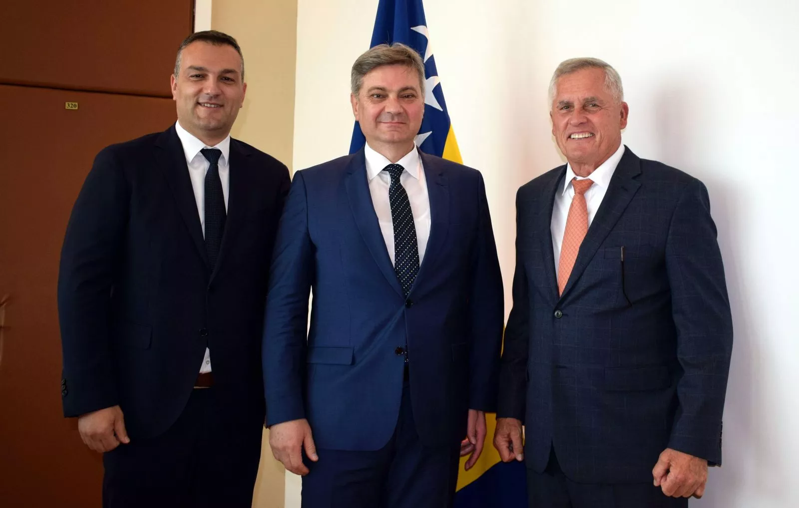 SARAJEVO, (Patria) - Predsjedavajući Vijeća ministara BiH Denis Zvizdić primio je danas direktora kompanije Bosnalijek Nedima Uzunovića i novoimenovanog savjetnika Uprave u kompaniji, bivšeg generala vojske Sjedinjenih Američkih Država Davida Grangea. Predsjedavajući Zvizdić je upoznao Grangea sa aktuelnom situacijom u BiH i čestitao mu je novu funkciju u kompaniji Bosnalijek.