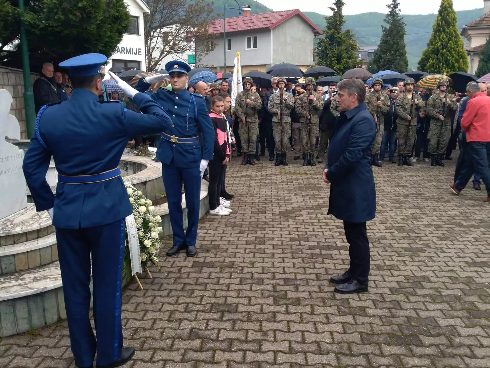 (Patria) - Član Predsjedništva BiH Željko Komšić položio je cvijeće na spomen-obilježje braniocima Goražda u sklopu 21. susreta dobitnika najvećih ratnih priznanja FBiH Zlatni ljiljan i Zlatna policijska značka Goražde 2019.