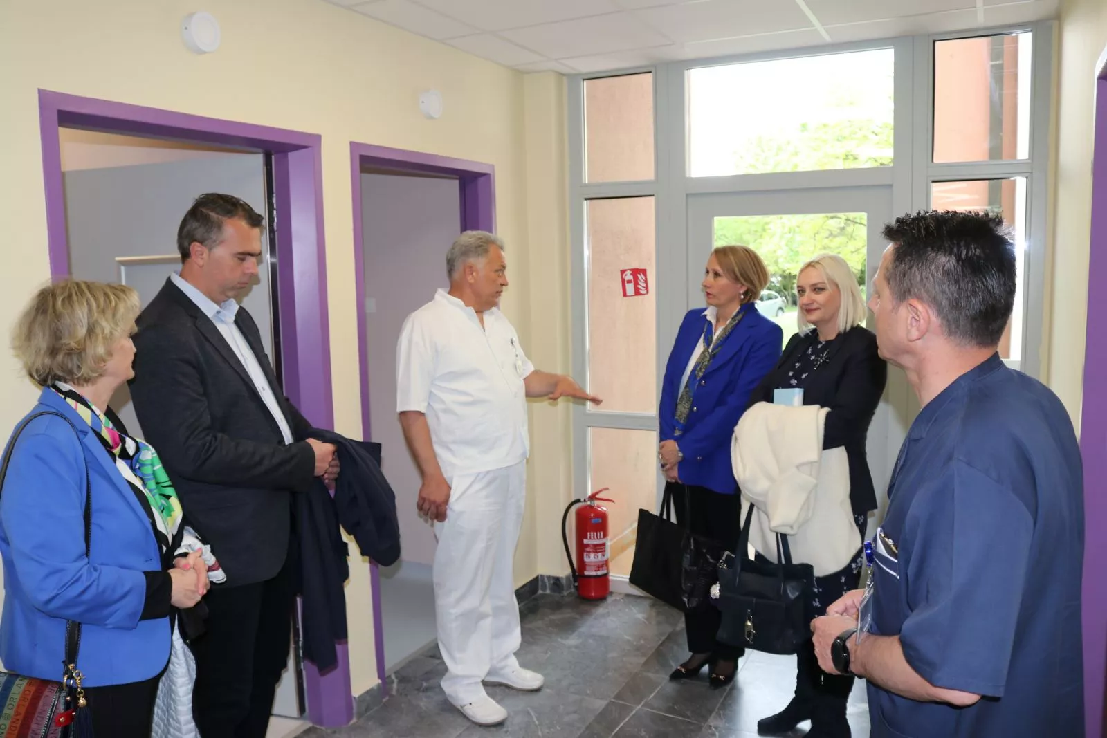 Ministrica Sofić i direktor Kravić, sa saradnicima, prilikom su obišli i Odjeljenje radiologije. Ovdje su u funkciji dva magneta i dva CT aparata, u dvije smjene, što je omogućilo smanjenje liste čekanja na ove usluge. Takođe su obišli i Odjeljenje ginekogije i akušerstva, Dnevnu bolnicu, te nove renovirane prostore za pedijatriju.