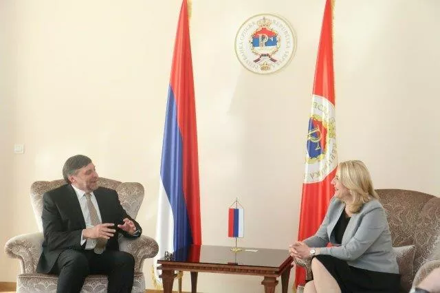 ISTOČNO SARAJEVO, (Patria) - Predsjednica Republike Srpske Željka Cvijanović razgovarala je danas u Istočnom Sarajevu sa zamjenikom pomoćnika državnog sekretara Sjedinjenih Američkih Država (SAD) za evropska i evroazijska pitanja Metjuom Palmerom.