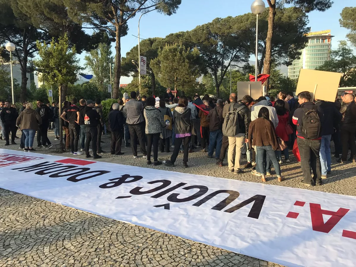 Pred začetkom vrha #BrdoBrijuni v #Tirana. #Protest pic.twitter.com/883oMGE7pI