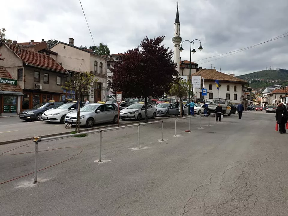SARAJEVO, (Patria) - Na Baščaršiji, na stanici za kombi vozila, postavlja se rukohvatna ograda u dužini od 37 metara. Na ovoj lokaciji primijećene su velike gužve u saobraćaju zbog zaustavljanja putničkih vozila, vozila gradskog saobraćaja i putnika, te je pješacima bilo izuzetno otežano kretanje.