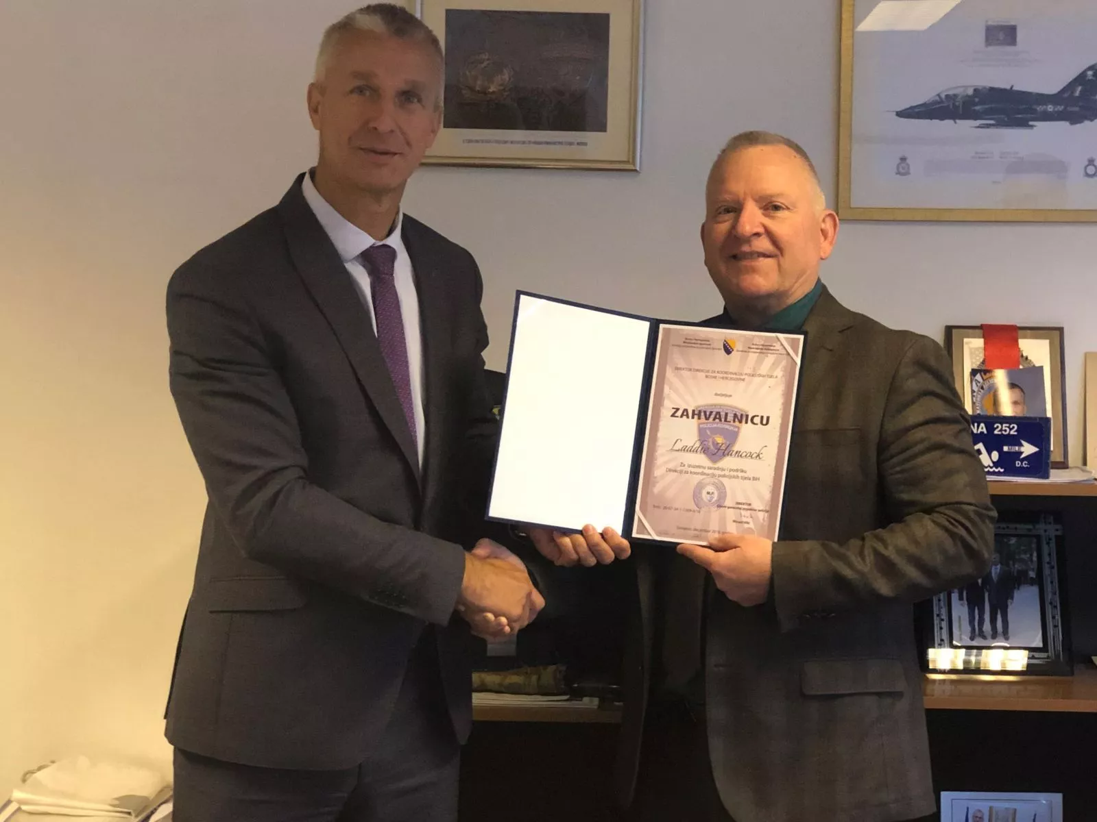 Sagovornici su razgovarali o planiranim zajedničkim aktivnostima u oblasti organizacije specijalističkih obuka za policijske službenike. Direktor Vilić je ovom prilikom uručio Hancock Zahvalnicu za pruženu podršku i nesebičnu pomoć u izgradnji kapaciteta Direkcije, te izrazio uvjerenje da će se ova uspješna saradnja nastaviti i u budućnosti.