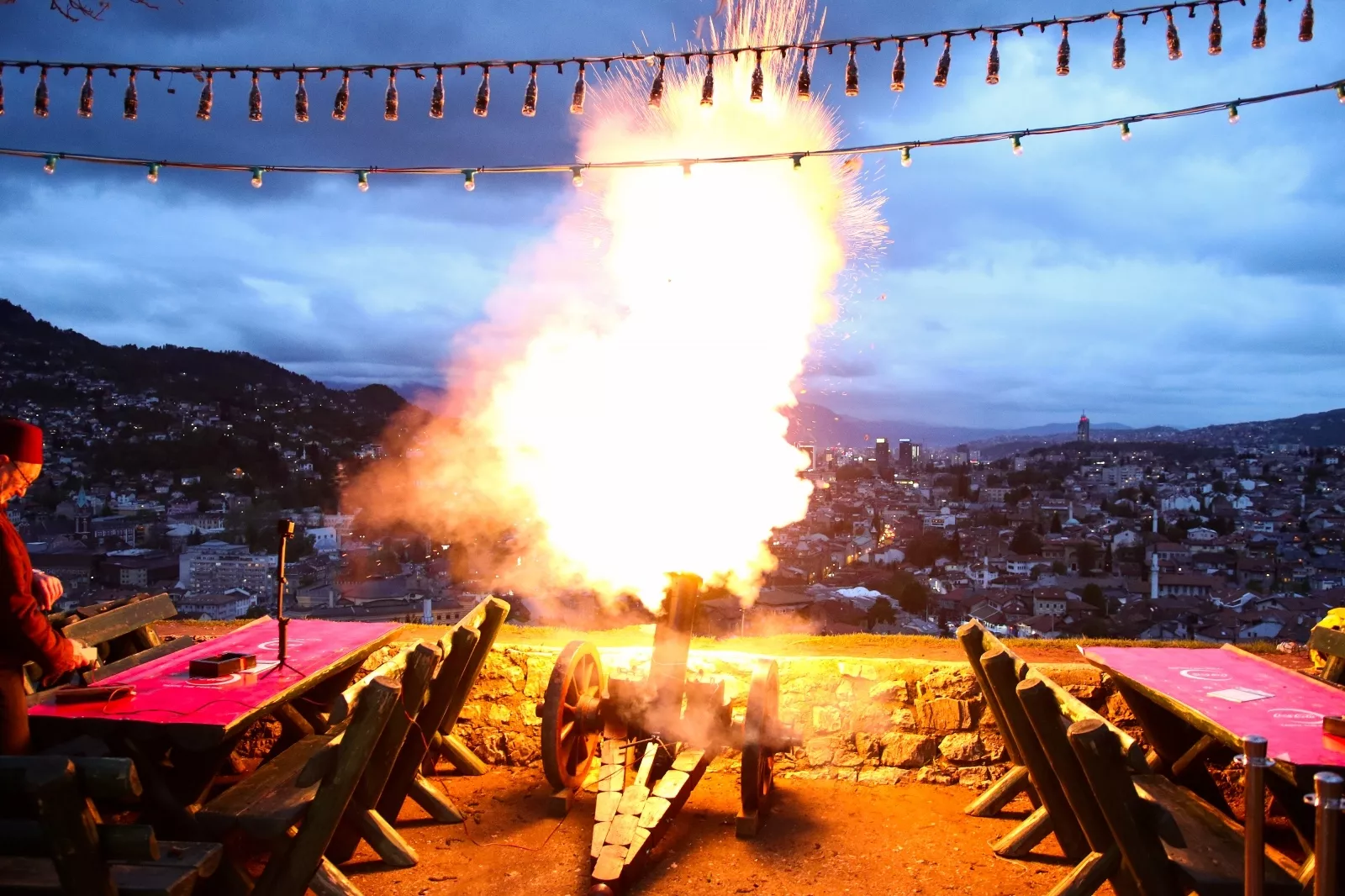 SARAJEVO, (Patria) - Pucnjem iz topa na Žutoj tabiji, ali i još nekoliko lokacija u Sarajevu postači su dočekali prvi iftar svetog mjeseca ramazana.