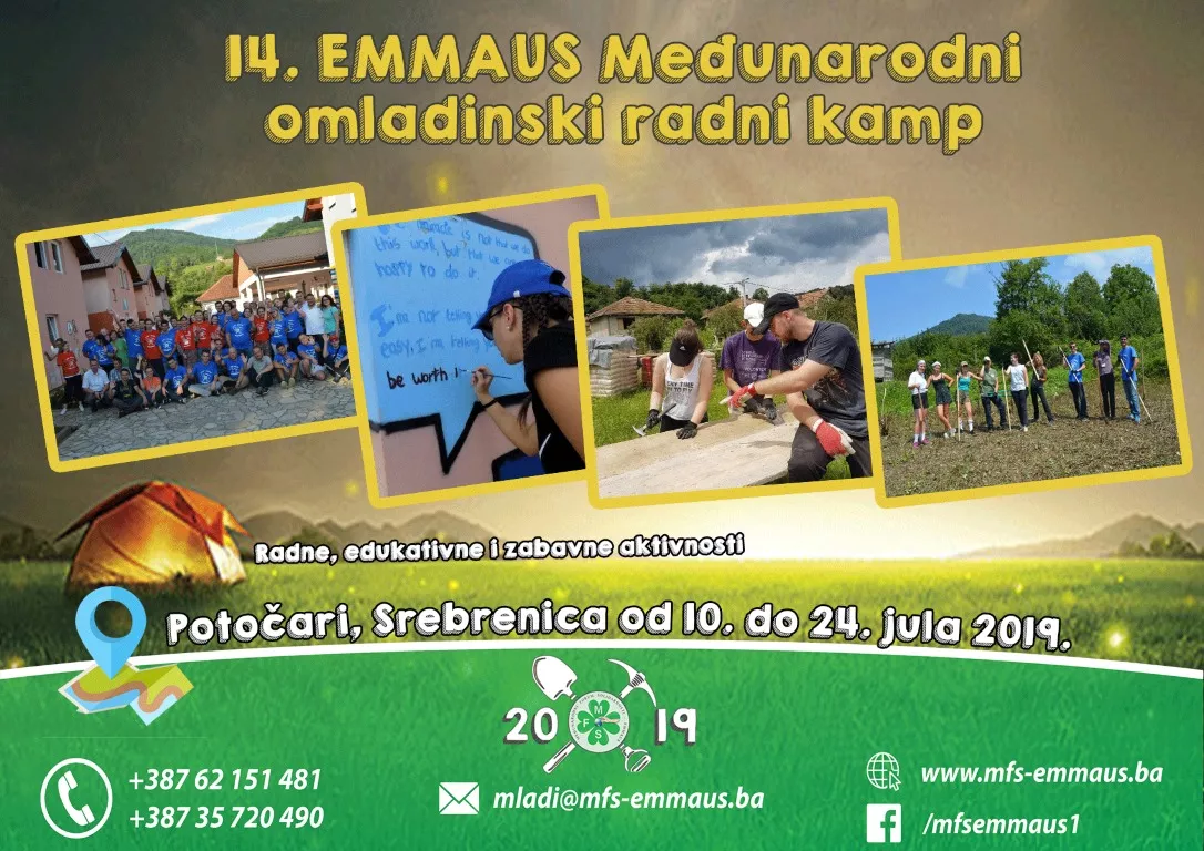 (Patria) - Četrnaesti Emmaus - Međunarodni omladinski radni kamp bit će održan od 10. do 24. jula ove godine u Potočarima, Srebrenica. S tim u vezi otvorene su aplikacije, a rok za njihov prijem je 5. juni, o čijem ishodu će aplikanti biti obaviješteni najkasnije do 20. juna ove godine.