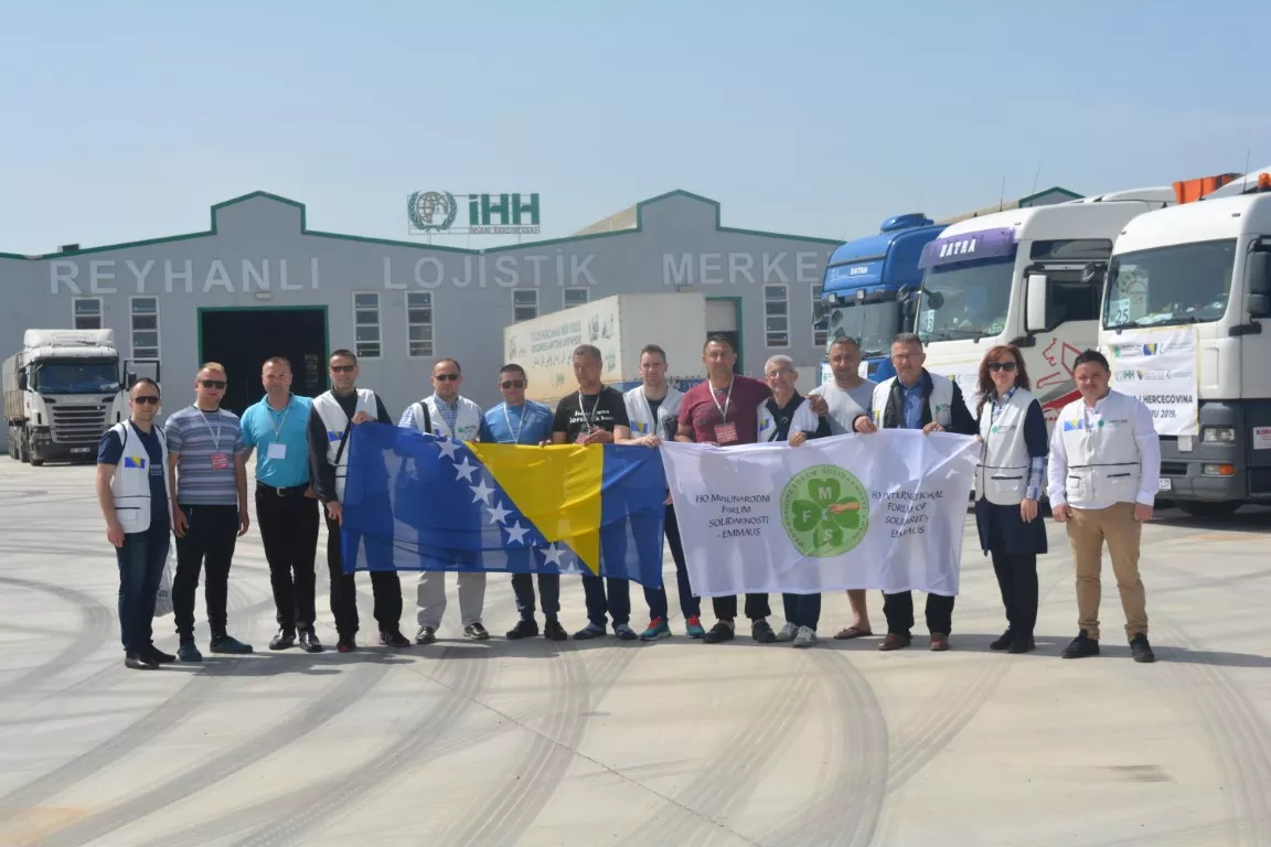 (Patria) - Najveći konvoj humanitarne pomoći iz Bosne i Hercegovine koji je MFS-EMMAUS poslao 17. aprila, danas je stigao u Rejhanlı, grad u blizini tursko-sirijske granice. Konvoj su dočekali predstavnici MFS-EMMAUS-a zajedno sa predstavnicima Islamske zajednice (Šemso Germić – glavni imam MIZ Ljubuški, Džemal ef. Salkić – Koordinator za društvenu brigu Muftijstva zeničkog, Rašid Orlović – tehnički sekretar MIZ Tešanj, Esad Fuško – Koordinator za društvenu brigu pri MIZ Travnik, Amer Osmanović –Koordinator za društvenu brigu pri MIZ Zvornik te Amela Jordamović predstavnica Medija centra Islamske zajednice. Šest stotina tona osnovnih životnih namirnica koje su građani naše zemlje donirali preko muftijstva tuzlanskog, travničkog, zeničkog i mostarskog dostavljeno je u logistički centar organizacije IHH – a, odakle će pomoć biti isporučena u kampove sa sirijskim izbjeglicama te u pekare