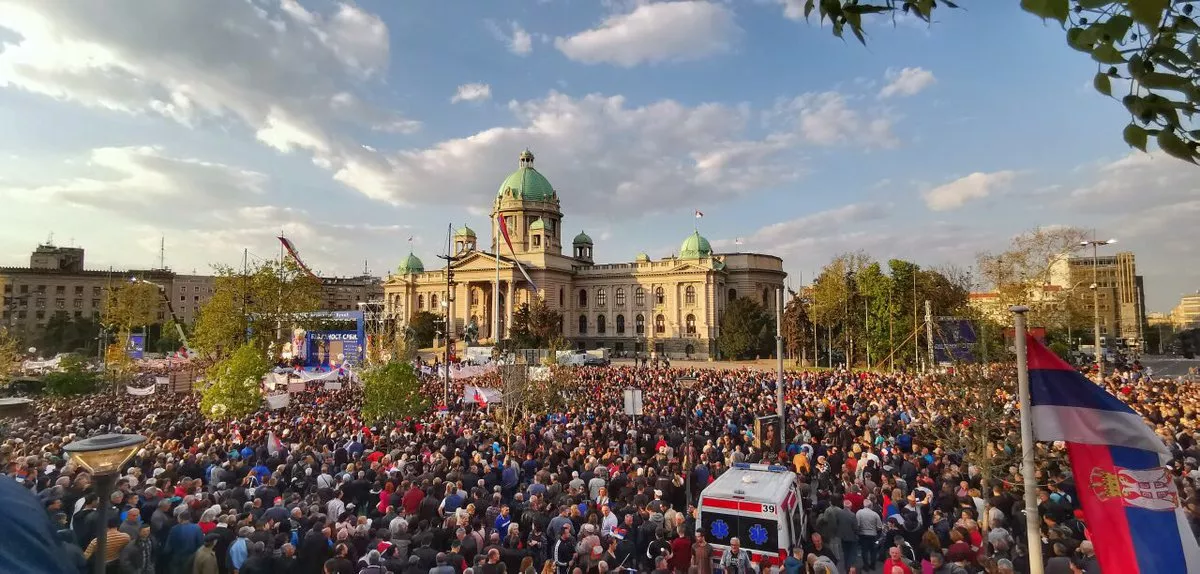 Srijanski predsjednik Aleksandar Vučić pojavio se oko 18:30 sati pozdravljajući okupljene. Uz njega je bio i predsjedavajući Predsjedništva BiH Milorad Dodik. Premijerka Srbije Ana Brnabić obratila se okupljenim pristalicama kojih je prema procjenama oko 100.000, navodeći sve ono što je aktuelna vlast uradila u proteklom periodu. Optužila je da su vraćali i vraćaju dug koji je napravio dio opozicije okupljen oko Saveza za Srbiju. Brnabić je rekla da je u Vučiću prepoznala novu energiju i da je današnja Srbija jednaka bez podjela.