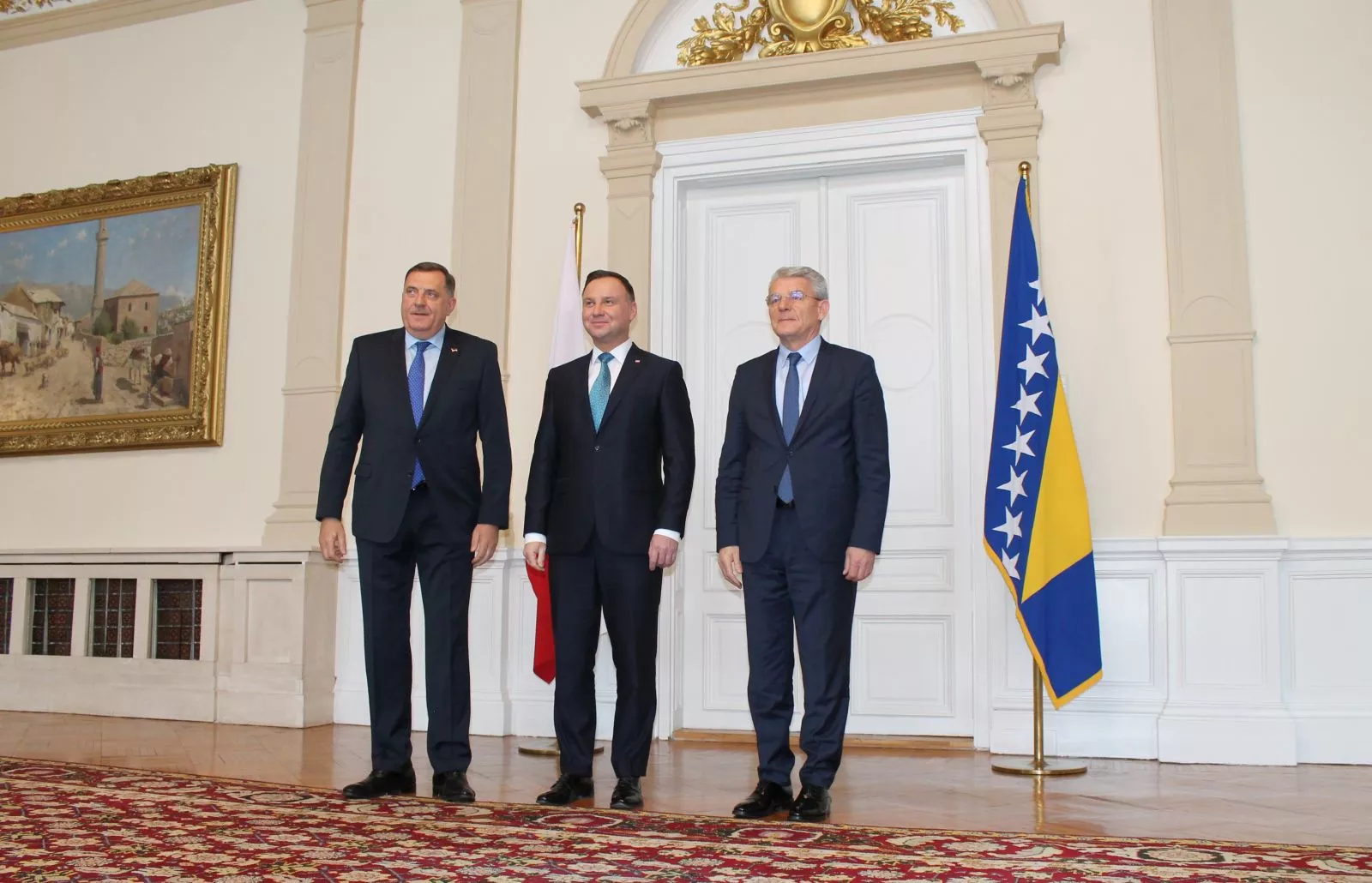 (Patria) - Predsjedavajući Predsjedništva BiH Milorad Dodik i član Predsjedništva BiH Šefik Džaferović primili predsjednika Republike Poljske Andrzeja Dudu. Na početku susreta iskazano je zadovoljstvo posjetom predsjednika Dude i uvjerenje da će današnji susret pružiti osnovu za dalje jačanje saradnje na svim poljima, a naročito na ekonomskom planu. Republika Poljska snažno podržava evropski put Bosne i Hercegovine i nastavit će da pruža podršku i u narednim etapama puta ka članstvu u EU, kazao je predsjednik Duda. Odnosi Bosne i Hercegovine i Republike Poljske su prijateljski i bez otvorenih pitanja, te kao takvi predstavljaju bazu za razvoj ukupnih bilateralnih odnosa. Potrebno je uložiti dodatne napore kako bi se povećala vanjskotrgovinska razmjena i saradnja na infrastrukturnim projektima od zajedničkog interesa.