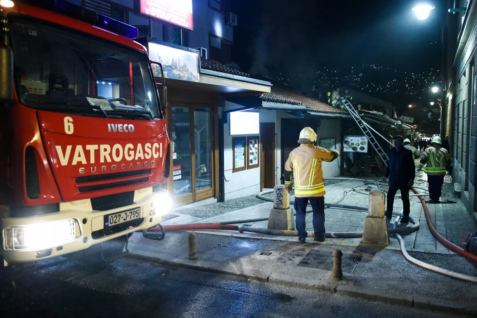 (Patria) - Večeras je došlo do požara na krovu ugostiteljskog objekta u ulici Đulagina na Baščaršiji, u sarajevskoj opštini Stari Grad, potvrđeno je za Patriju iz Profesionalne vatrogasne brigade Kantona Sarajevo.