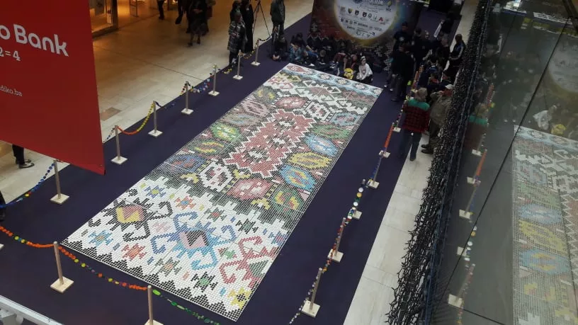 SARAJEVO, (Patria) – Nakon tri godine rada, na 35 art eko radionica u organizaciji Udruženja Green art i lokalnih zajednica u kojima je učestvovalo više od 700 građana okončan je projekat izrade čepoćilima veličine 30 metara kvadratnih za šta je bilo potrebno 25.000 plastičnih čepova koji je danas predstavljen javnosti u SCC-u. U akcijama prikupljanja čepova učestvovali su i građani, djeca iz osnovnih škola, članovi Udruženja Green art.