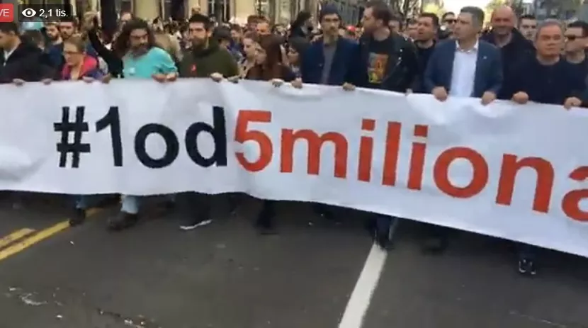 U šetnji učestvuje nekoliko hiljada građana koji nose transparent Jedan od pet miliona.