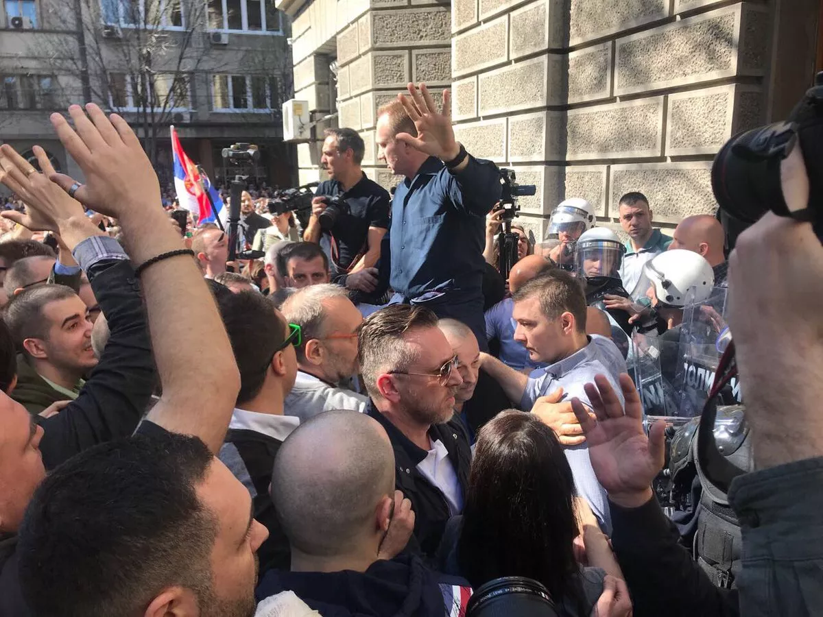 Vučić je kazao da su okupljeni probili sve ograde ali da ne treba niko da se plaši jer će organi reda raditi svoj posao. Posebno je kazao da će novinari slobodno raditi svoj posao i da neće biti više upada.