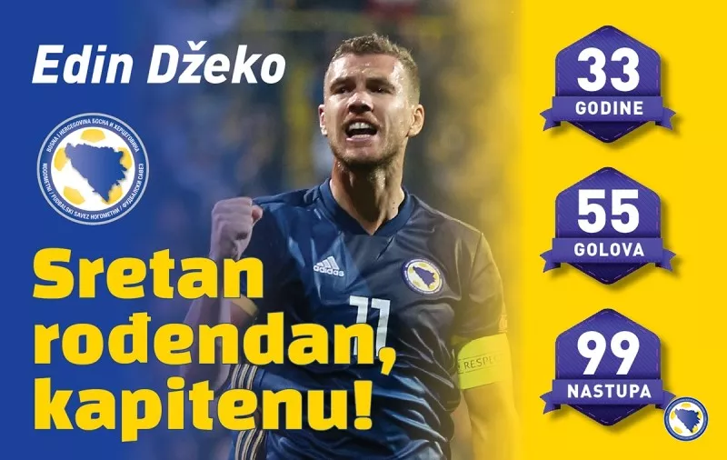 SARAJEVO, (Patria) - Kapiten „A“ reprezentacije Bosne i Hercegovine Edin Džeko danas puni 33 godine.