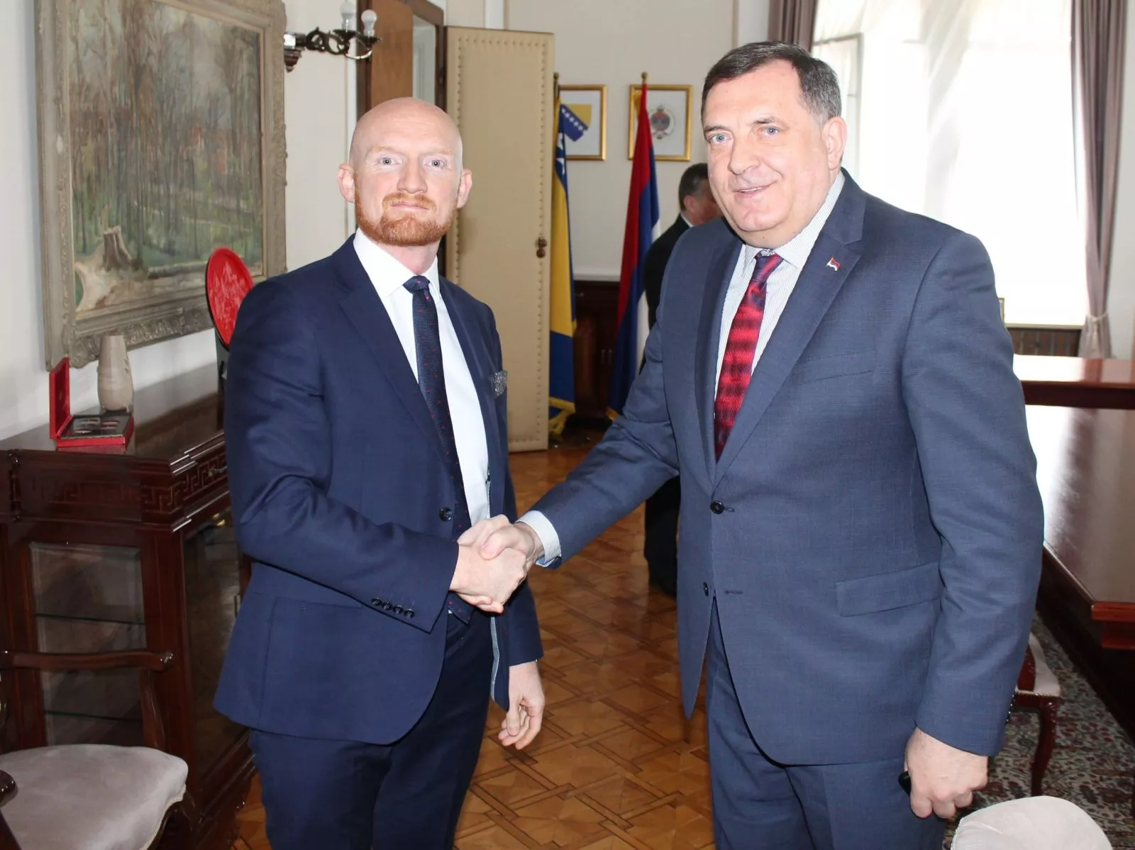 SARAJEVO, (Patria) - Predsjedavajući Predsjedništva BiH Milorad Dodik primio je u nastupnu posjetu ambasadora Ujedinjenog Kralјevstva Velike Britanije i Sjeverne Irske Mathewa Fielda, saopćilo je Predsjedništvo BiH.