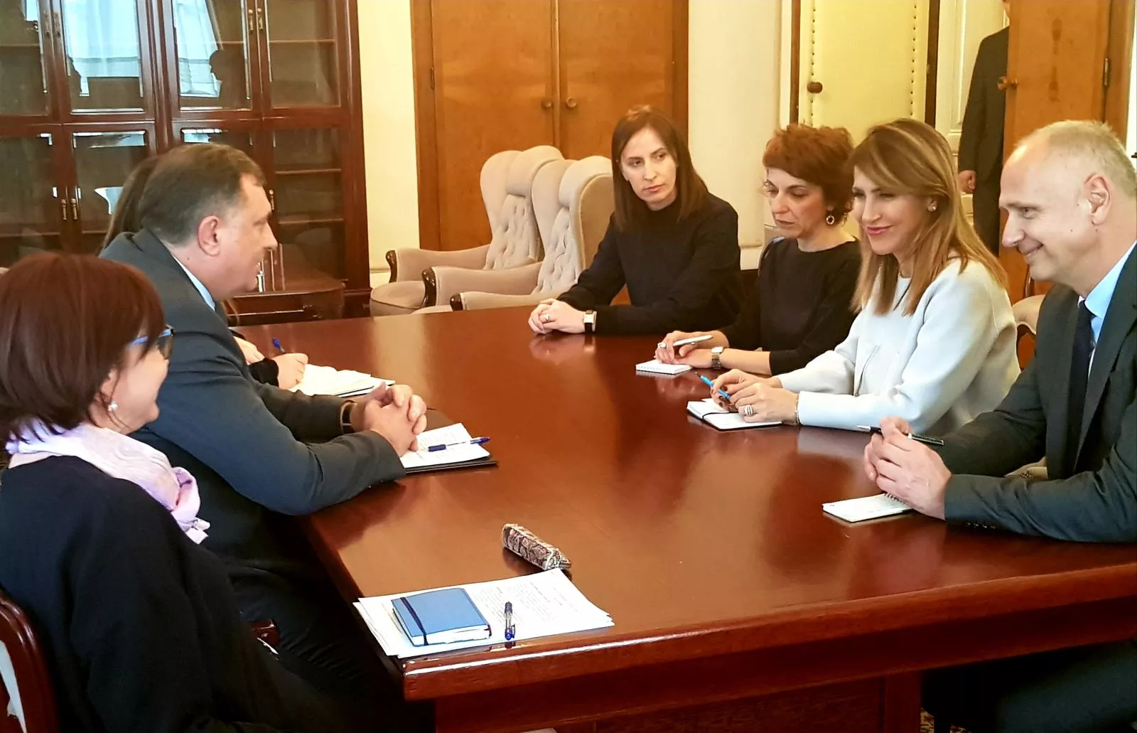 Sastanak sa Dodikom dio je političkih konsultacija generalne sekretarke Vijeća za regionalnu saradnju na Zapadnom Balkanu i Jugoistočnoj Evropi. Konsultacije u Bosni i Hercegovini do sada su obavljene sa predsjedavajućom Predstavničkog doma Parlamentarne skupštine Bosne i Hercegovine Borjanom Krišto, članom Predsjedništva Bosne i Hercegovine Šefikom Džaferovićem i predsjedavajućim Vijeća ministara Bosne i Hercegovine Denisom Zvizdićem.
