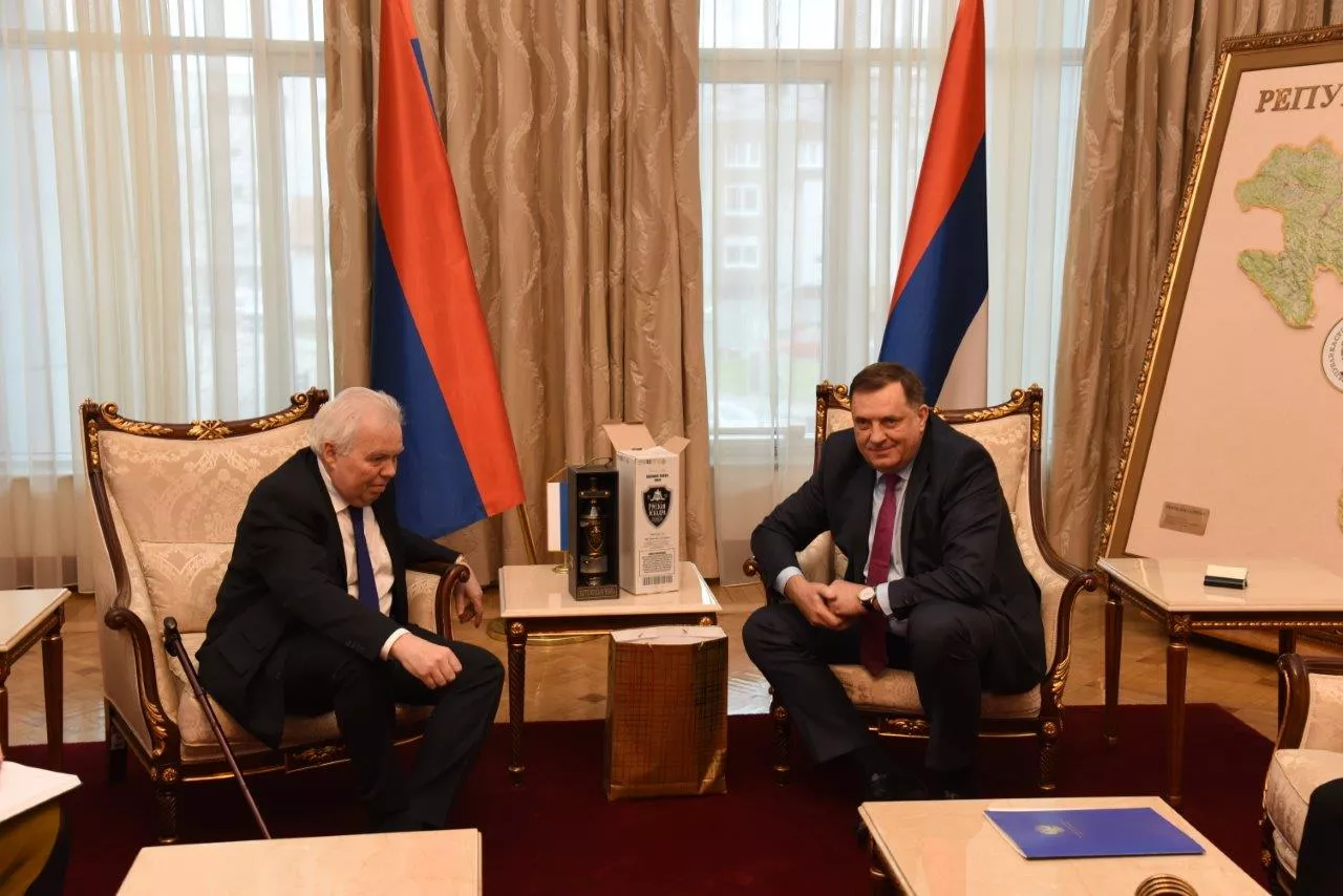 BANJA LUKA, (Patria) - Predsjedavajući Predsjedništva BiH Milorad Dodik razgovarao je danas u Banjoj Luci s ambasadorom Ruske Federacije Petrom Ivantsovim, koji je predsjedavajućem Dodiku u Banju Luku donio rođendansku čestitku ruskog predsjednika Vladimira Putina. U rođendanskoj čestitki, između ostalog, piše da Vladimir Putin cijeni napore predsjedavajućeg Predsjedništva Milorada Dodika za pobolјšanje prijatelјskih odnosa BiH i Ruske Federacije, te izražava nadu da će se ti odnosi i u narednom periodu plodno razvijati, na dobrobit naroda Ruske Federacije i Bosne i Hercegovine, saopćeno je iz Predsjedništva BiH.