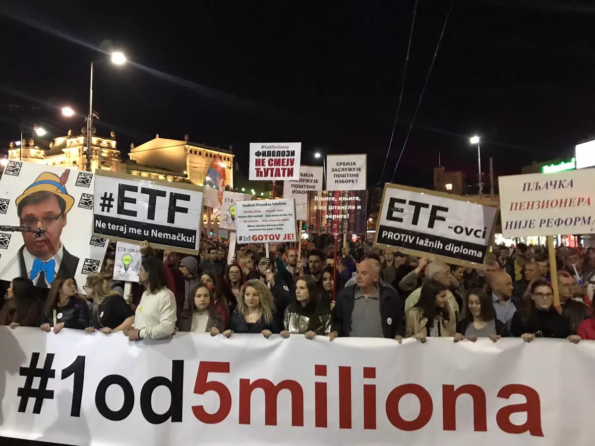 BEOGRAD, (Patria) - Građanski protest „1 od 5 miliona“ u Beogradu završen je u subotu navečer ispred zgrade Radiotelevizije Srbije (RTS).