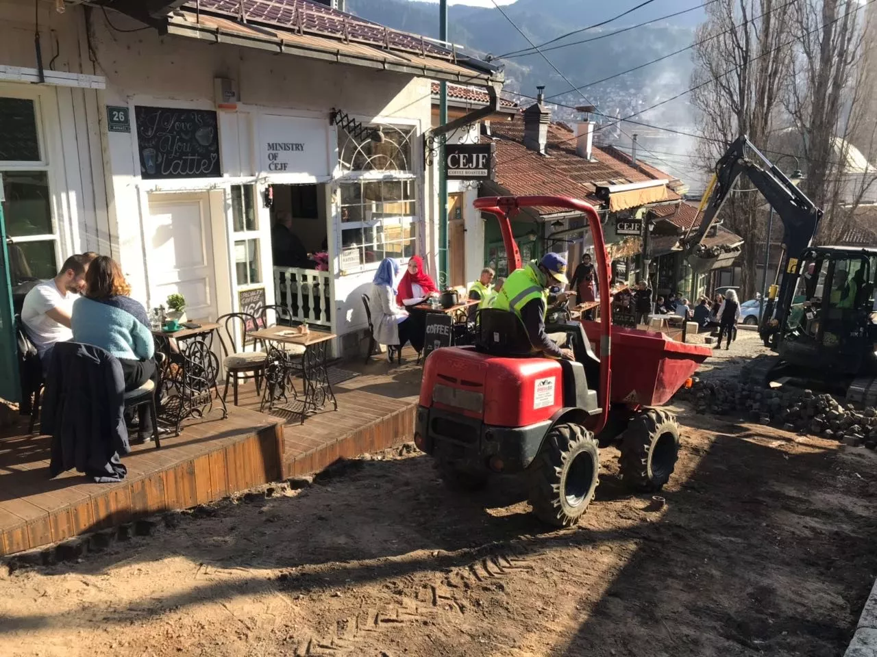 SARAJEVo, (Patria) - Počeli su radovi na sanaciji ulica Kovači i Ploča, na dionici od Čekrčijine džamije do Muzeja Alije Izetbegovića u dužini od 515 metara. Radi se o projektu vrijednom 413.905,57 konvertibilnih maraka, kojeg u cjelosti finansira Općina Stari Grad Sarajevo.