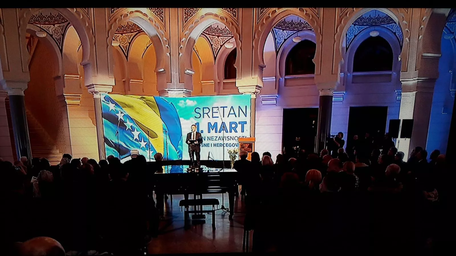 SARAJEVO, (Patria) – Izvođenjem himne BiH u sarajevskoj Vijećnici održana je svečana akademija povodom 1. marta Dana nezavisnosti BiH kojoj prisustvuju brojne zvanice iz političkog, vjerskog i društvenog života BiH i diplomatskog kora u BiH. Odata je počast svima onima koji su dali svoj život za BiH i odbranu zemlje. Član Predsjedništva BiH Šefik Džaferović kazao je da 1. mart ima nezamjenljiv značaj u historiji BiH.