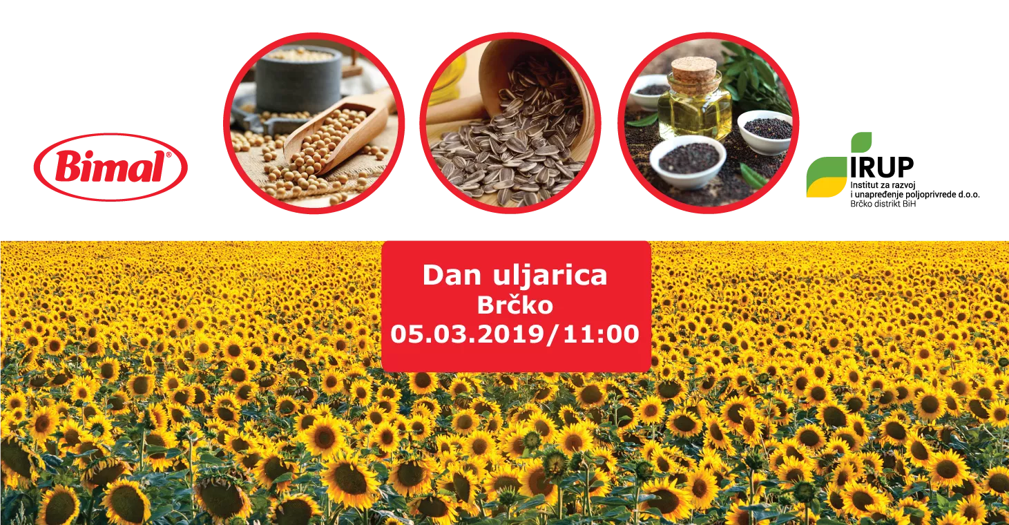 BRČKO, (Patria) - Institut za razvoj i unapređenje poljoprivrede (IRUP) Brčko zajedno sa kompanijom BIMAL organizuje Dan uljarica u Brčkom, 05. marta 2019. godine sa početkom u 11 sati.
