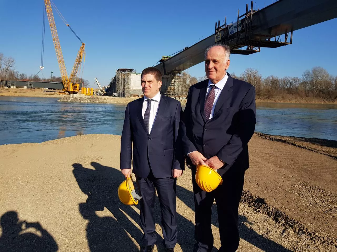 SARAJEVO, (Patria) - Zamjenik ministra komunikacija i prometa Bosne i Hercegovine Saša Dalipagić i ministar mora, prometa i infrastrukture Republike Hrvatske Oleg Butković obišli su radilište mosta povodom svečanog obilježavanja spajanja nizvodnog mosta preko rijeke Save kod Svilaja, saopćilo je Ministarstvo komunikacija i prometa BiH.