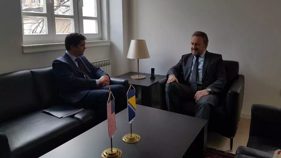 SARAJEVO, (Patria) - Predsjednik Stranke demokratske akcije Bakir Izetbegović primio je u nastupnu posjetu ambasadora Sjedinjenih Američkih Država u Bosni i Hercegovini Erica Nelsona. Sagovornici su istaknuli da su odnosi dvije zemlje u znaku strateškog prijateljstva, u kojem posebno mjesto zauzima podrška koju SAD pružaju Bosni i Hercegovini, njenom teritorijalnom integritetu, suverenitetu i nezavisnosti.
