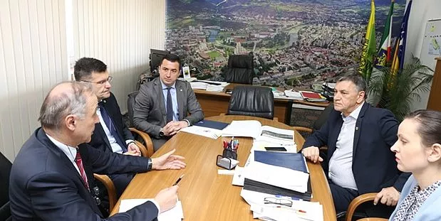 ZENICA, (Patria) - Gradonačelnik Zenice Fuad Kasumović sa saradnicima i rukovodstvo Nogometnog/Fudbalskog saveza Bosne i Hercegovine koje su činili Adnan Džemidžić, generalni sekretar NS/FS BiH, Nihad Hodžić, sekretar Izvršnog odbora NS/FS BiH te Alija Porča, direktor Trening centra Zenica održali su radni sastanak o više tema.