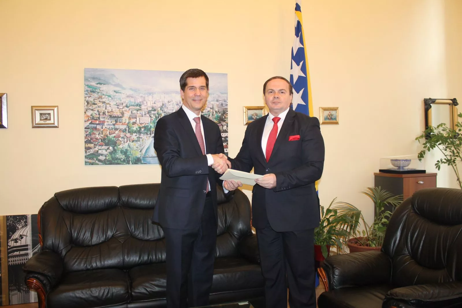 SARAJEVO, (Patria) - Novoimenovani ambasador Sjedinjenih Američkih Država Eric George Nelson predao je danas načelniku Odjela za diplomatski protokol Ministarstva vanjskih poslova Bosne i Hercegovine Mirsadu Bešiću kopije akreditivnih pisama.