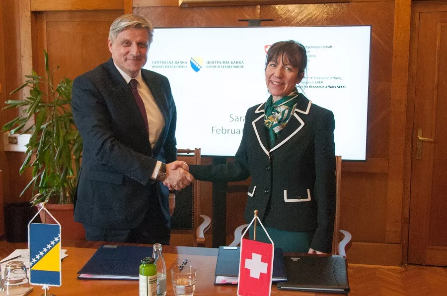 Sporazum su potpisali ambasadorica Švicarske u BiH Andrea Rauber Saxer i guverner CBBiH Senad Softić.