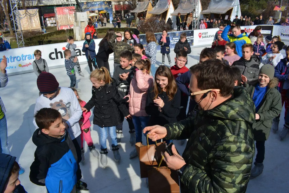 Dječija radosna lica bila su dokaz koliko su zadovoljni današnjim iznenađenjima na klizalištu, a roditelji pokazali oduševljenje da njihovi mališani, a i oni zajedno sa njima već mjesec dana besplatno kližu u srcu Starog Grada.