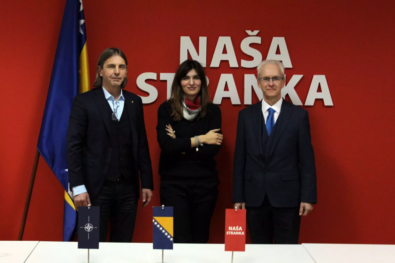 SARAJEVO, (Patria) - Predsjednik i potpredsjednica Naše stranke, Predrag Kojović i Sabina Ćudić, danas su u Sarajevu održali sastanak sa Mel McNultyjem, političkim savjetnikom i NATO civilom A6, i Ken Lindsayjem, savjetnikom za političke, parlamentarne i upravne poslove u NATO štabu Sarajevo, navode iz Naše stranke. Kojović je tom prilikom pozdravio potpisivanje protokola o pristupanju Makedonije NATO-u i izrazio nadu da će i BiH uskoro ubrzanim putem krenuti ka članstvu u tom vojnom savezu.