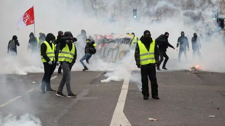 PARIZ, (Patria) - Više od 10.000 ljudi tzv. "žutih prsluka" danas je ponovo 12. vikend zaredom protestvovalo na ulicama Pariza protiv vlade. U više navrata policija je koristila suzavce i silu, a na snimcima koji su objavljeni na društvenim mrežama vidi se da su u naletu policije stradali i novinari i fotoreporteri.