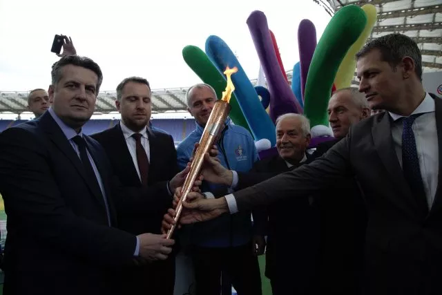 (Patria) - Delegacija EYOF 2019, na čelu sa gradonačelnicima jučer je zvanično preuzela Baklju mira od Evropskog olimpijskog komiteta. Osim baklje u Rimu su gradonačelnici dobili i Maslinovu grančicu koja simbolizuje takođe mir i zajedništvo.