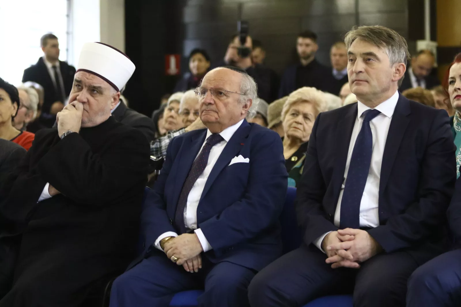 „Dozvolite mi da pozdravim i iskažem duboko poštovanje preživjelima Holokausta, a koji su ovdje danas sa nama. Onima koju su svjedoci mračne strane istorije koja je ostavila duboke posljedice na njih, a nam svima obavezu da se suprotstavljamo svim oblicima zala i nasilja. Obavezu da ne dozvolimo da se tako nešto ikada više dogodi“, rekao je Komšić.