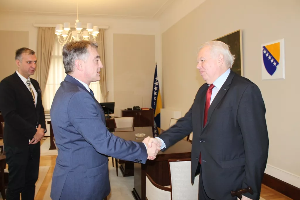 Član Predsjedništva Bosne i Hercegovine dao je opći pregled političke i ekonomske situacije u Bosni i Hercegovini, te istakao potrebu ubrzanog puta naše zemlje ka euroatlantskim integracijama koje su, prema njegovom mišljenju, ključne za stabilizaciju, kako Bosne i Hercegovine, tako i regije u cjelini, saopćeno je iz Predsjedništva BiH.